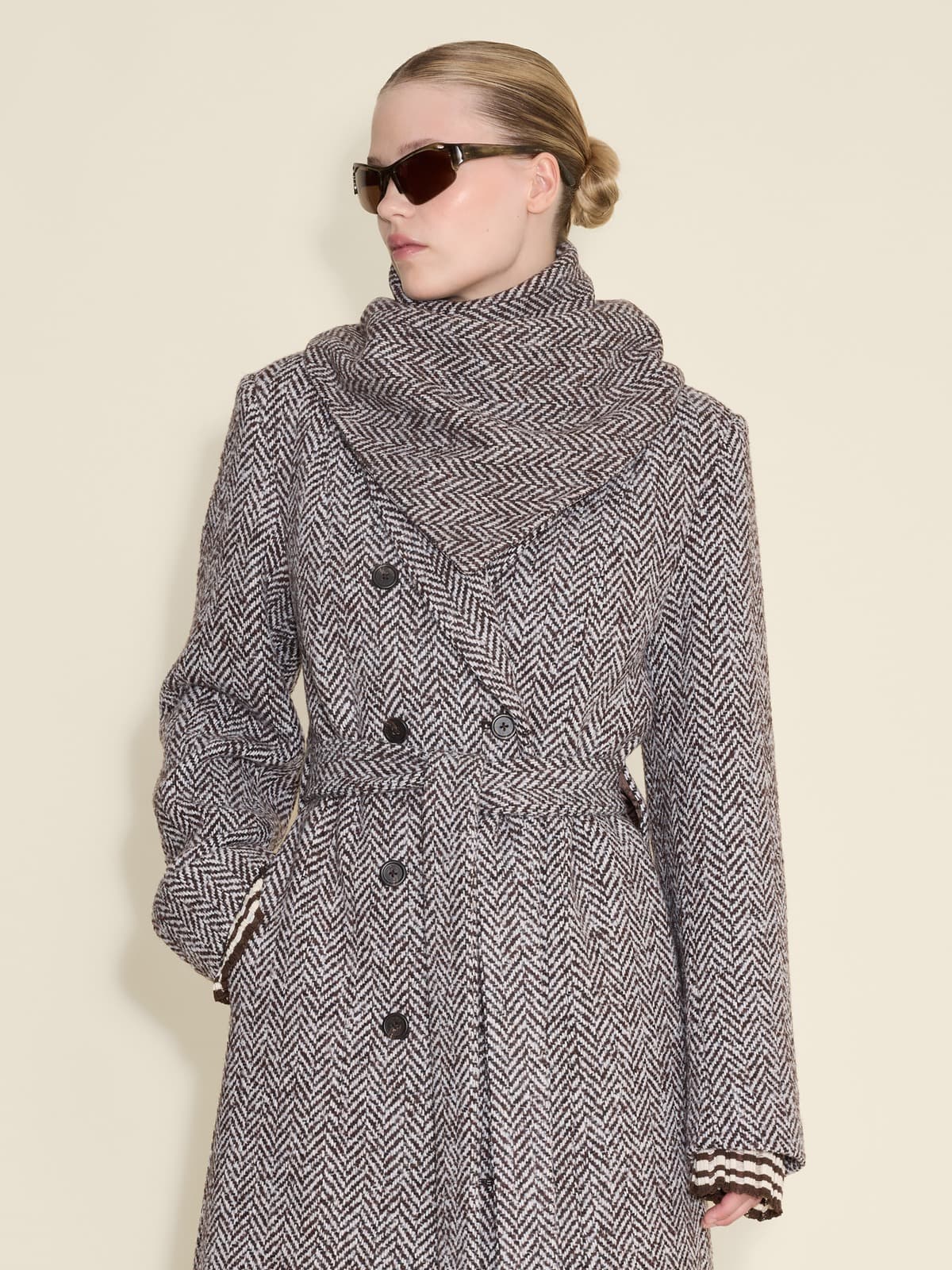 At this time of the year, leaving the house on your off-duty days can feel like a challenge. The solution? A list of heat-preserving looks worth getting excited about. Conquer the cold with timeless outerwear like the Emi Herringbone coat and essential accessories like the Aster Stitch scarf.