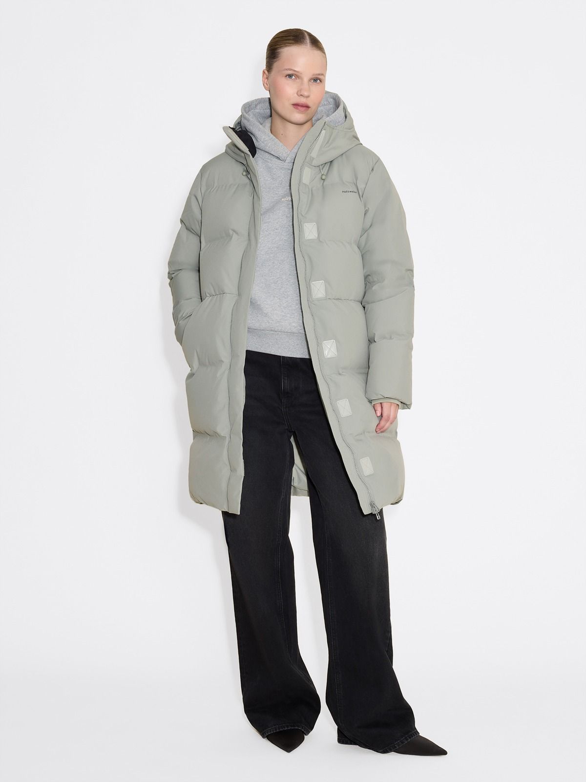 The Loen down jacket is core to our outerwear offering. Quilted and padded with RDS-certifed down, this mid-length design features a hood with a drawstring fastening, fitted cuff sleeves, side slit pockets, and an internal zipped chest pocket.