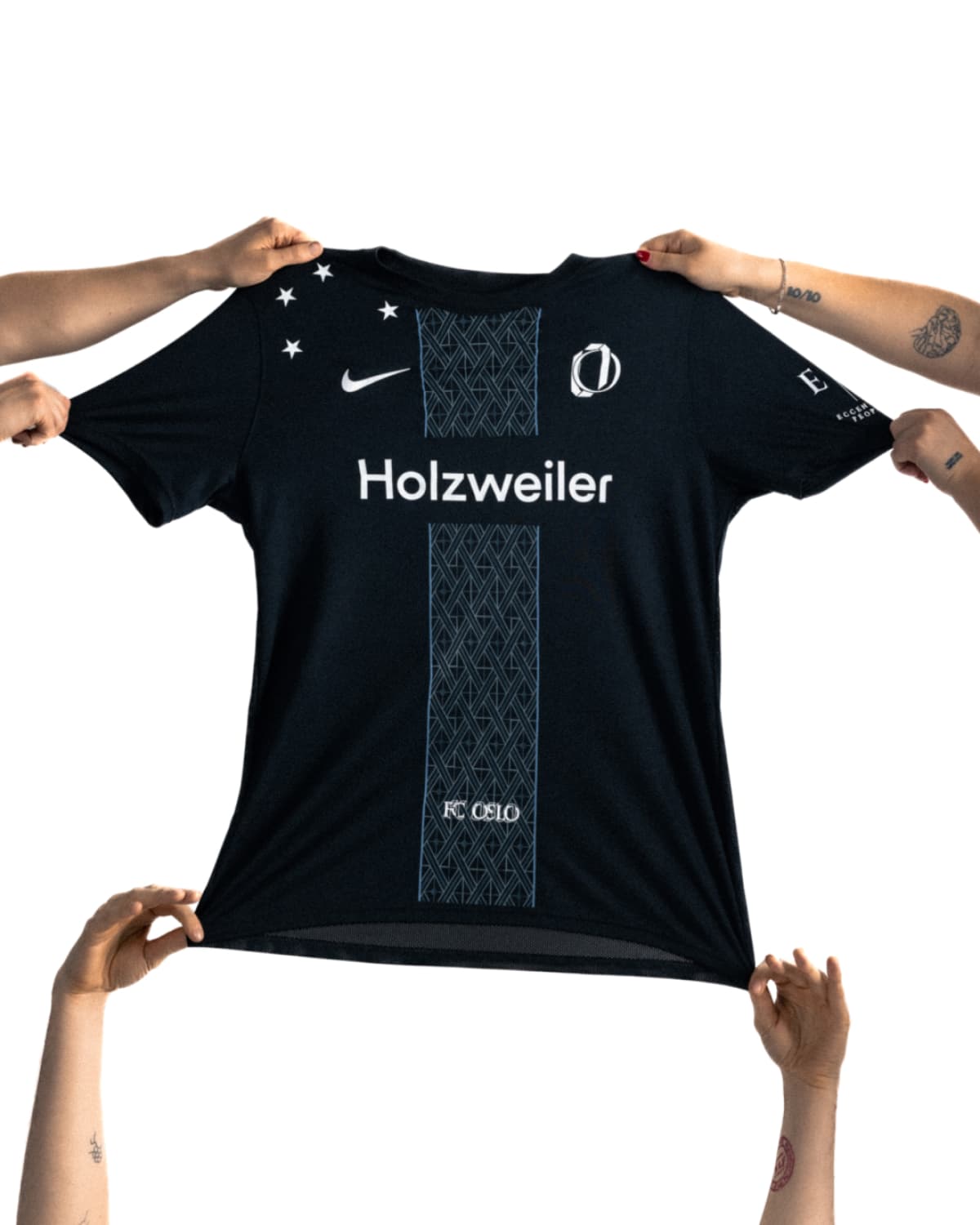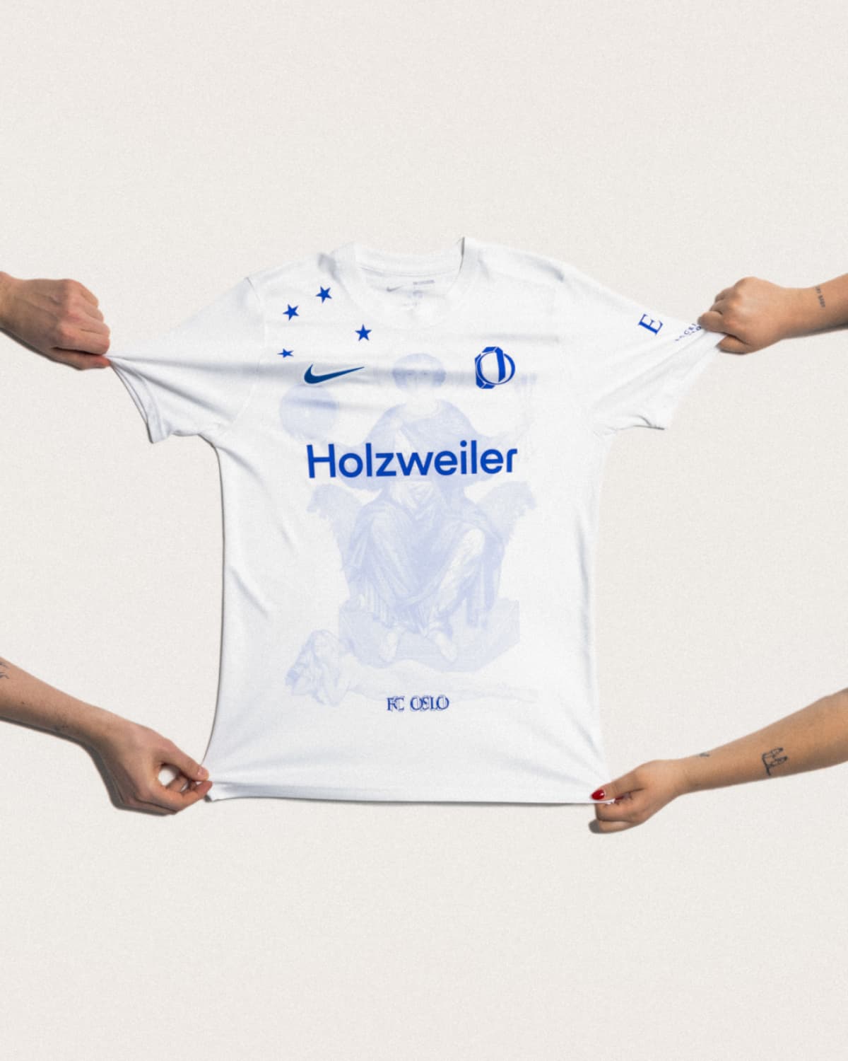 FC Oslo’s mission is to showcase the best of the city by bringing together a diverse range of people and uniting them through football; a mission that Holzweiler wholeheartedly supports. In the years since Andreas and Andrew’s first encounter, the bond between brand and team has continued to strengthen. Holzweiler is proud to continue to support FC Oslo; this season's new shirt is emblematic of their shared future.