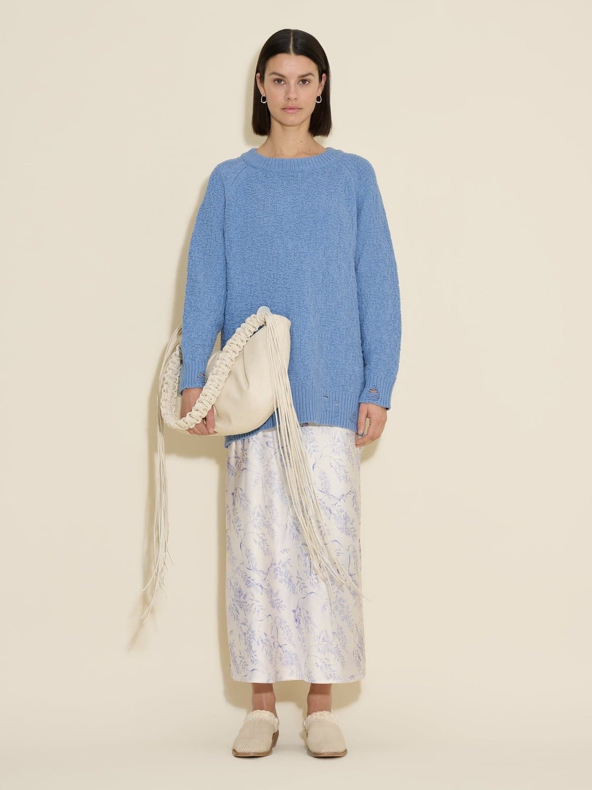 An organic silhouette that keeps its contents safe, our Cocoon bag draws inspiration from the life cycle of the butterfly. Consider it the natural partner of the floral prints seen across designs in our Spring/Summer '24 collection.