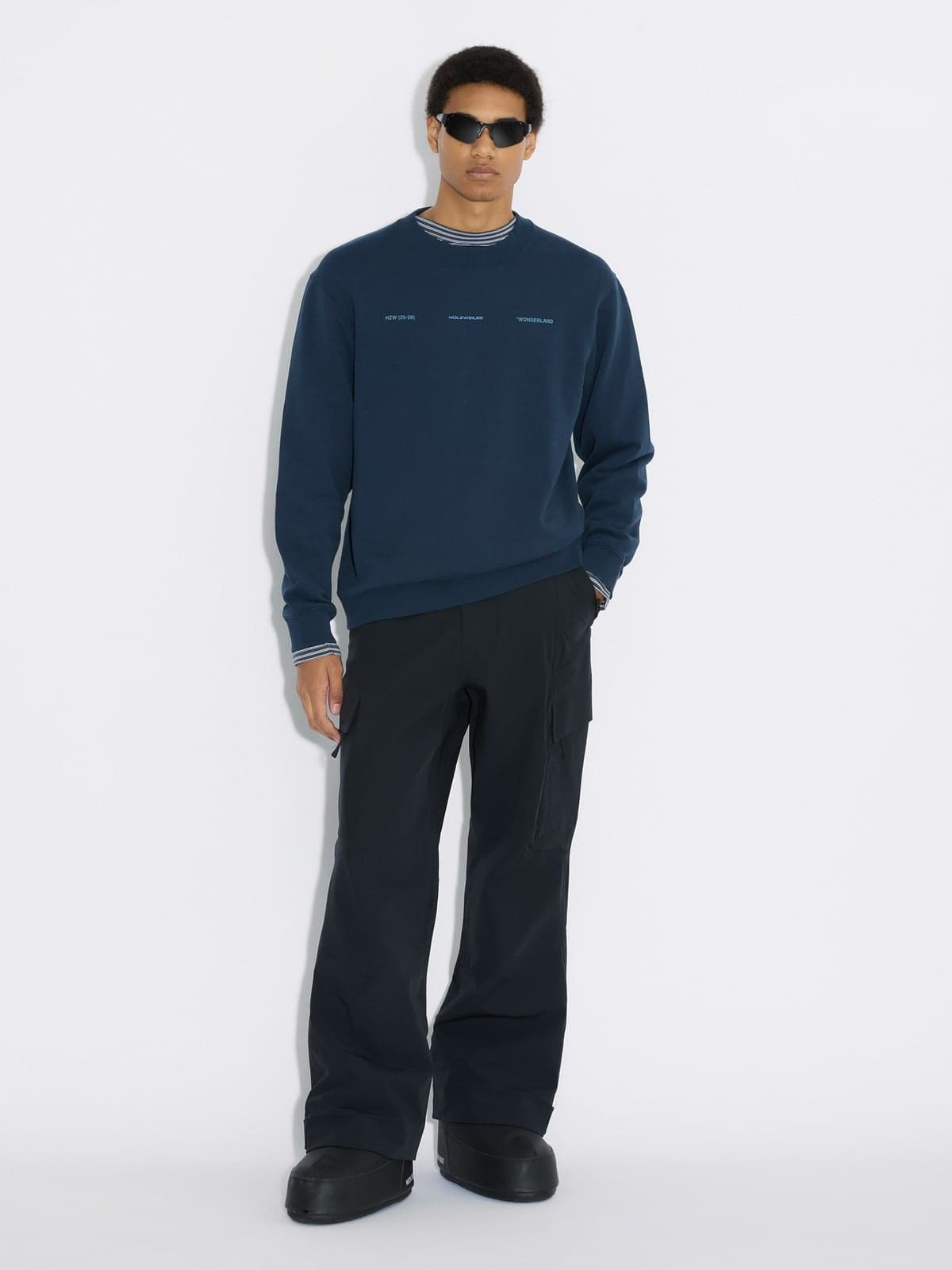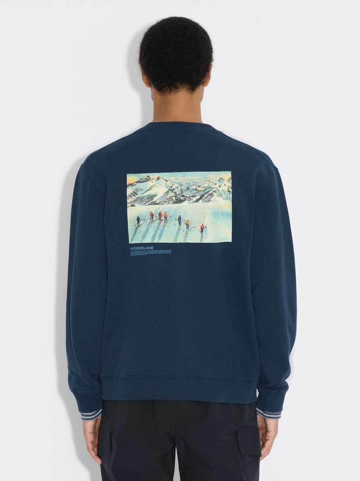 Our best-loved sweater style, the Duke National Crewneck Sweater is the epitome of an everyday essential. For Autumn/Winter '25's 'Winter Wonderland' collection, the print on this Duke style pays homage to the enchanting spirit of the Norwegian winter in the mountains, inspired by the untouched beauty and magic of Krøttøya covered with snow. Reimagining a vintage postcard of a cross-country skiing scene, decorated with Holzweiler written in the snow.