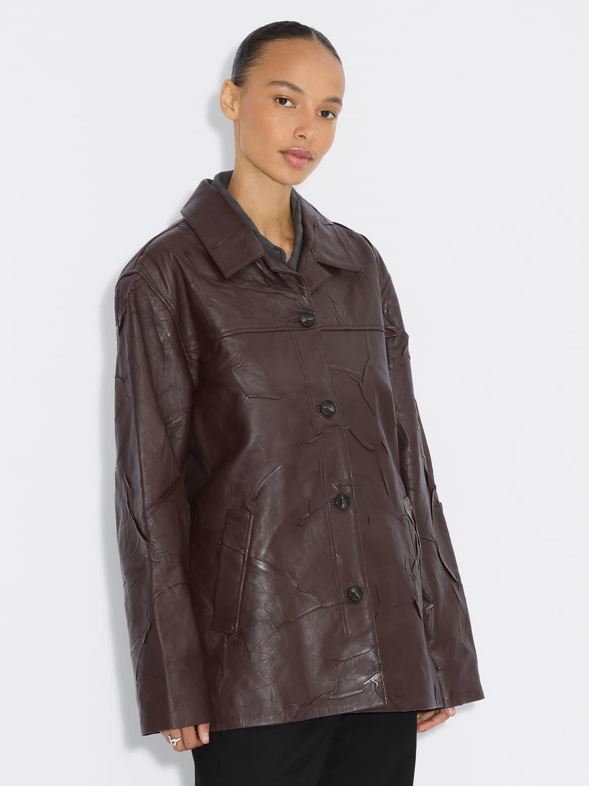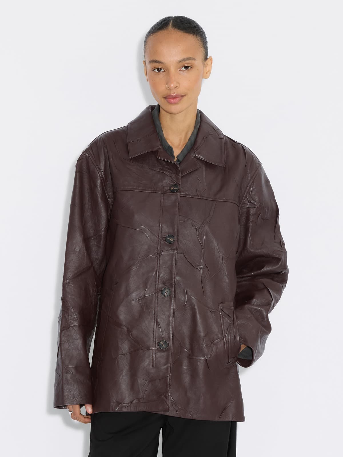 Crinkle-Effect Leather Jacket